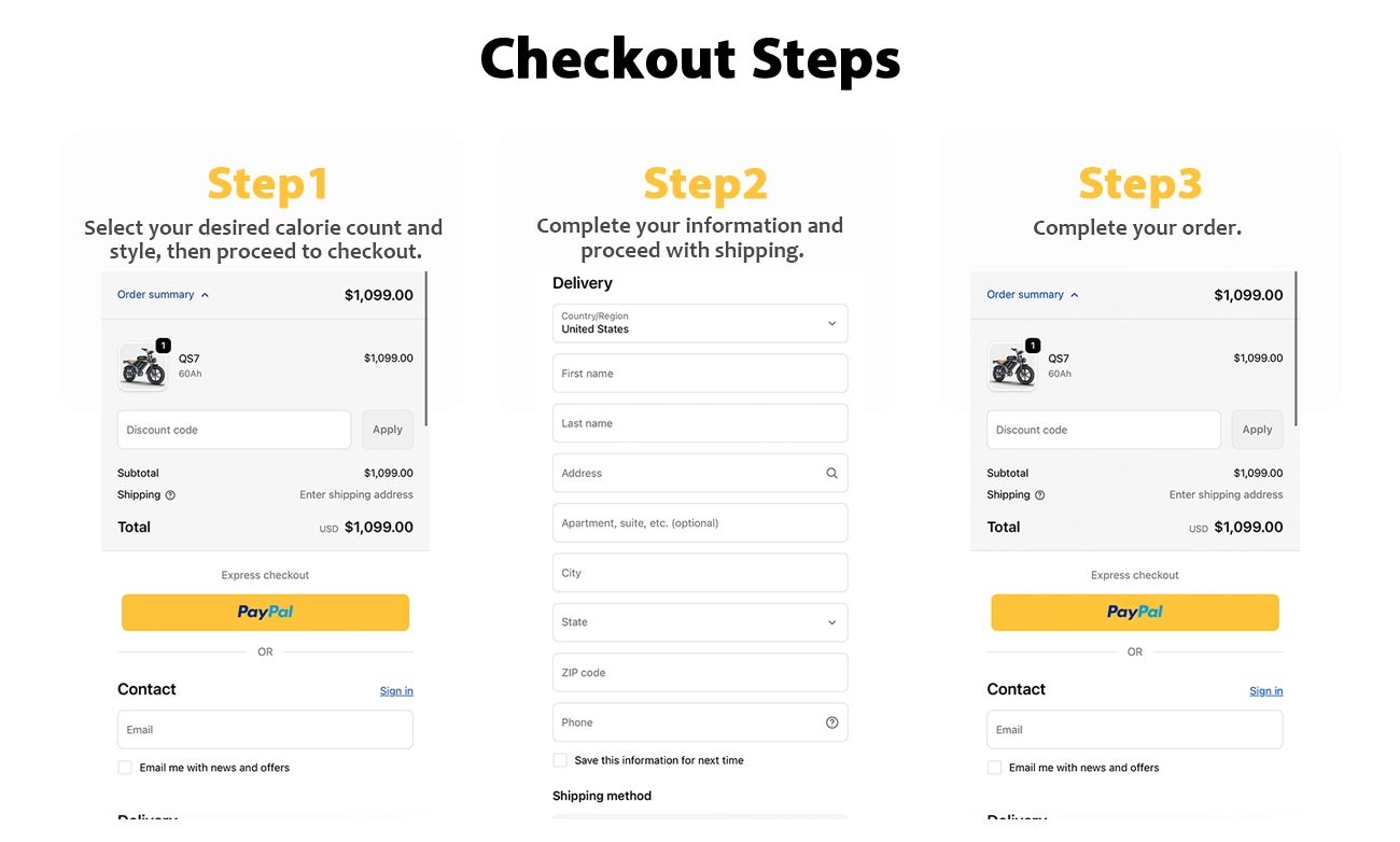 This is a guide on how to checkout, please follow only 3 steps below. If there's still remain questions please feel free to contact: support@deepowerbike.com.