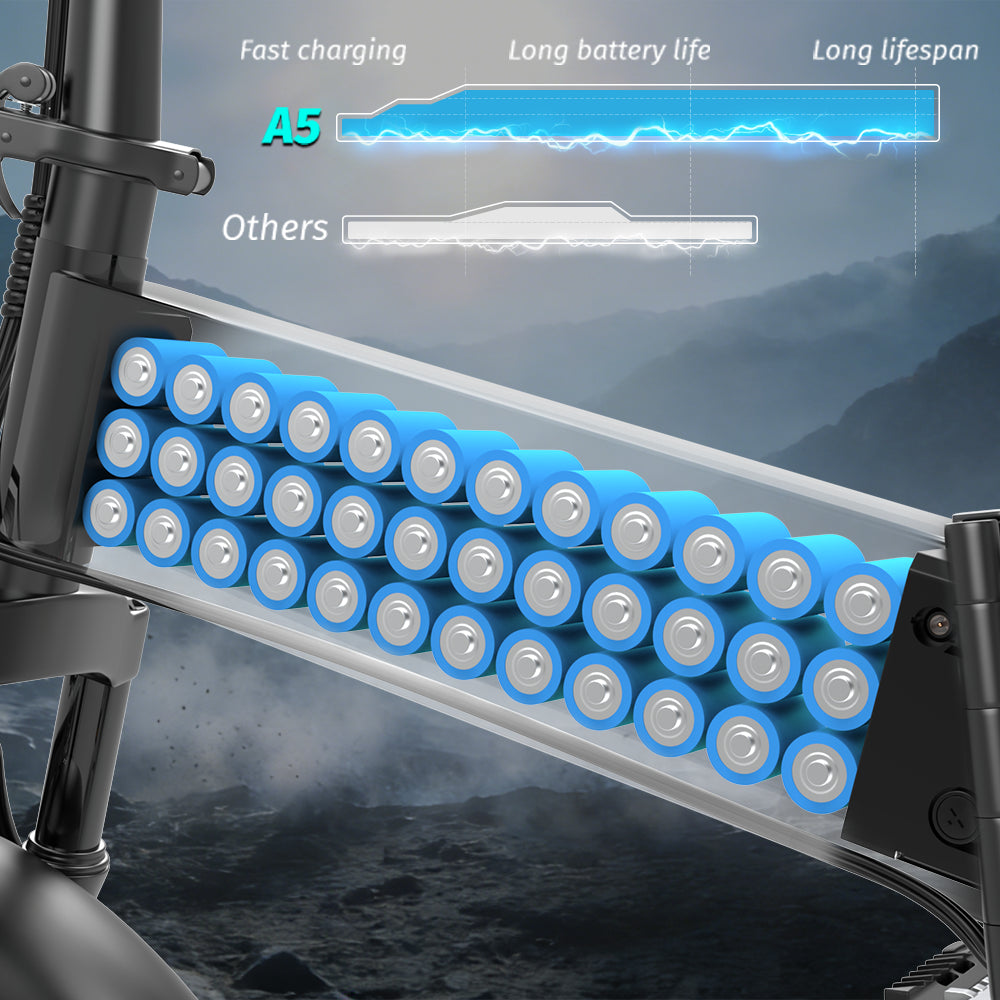 LG Original Cells & Automotive-Grade Capacity: Equipped with genuine LG power cells, 48V 15.6Ah automotive-grade capacity, stable charge-discharge cycles, no false capacity, long lasting endurance for all e-bike long-distance riding needs.